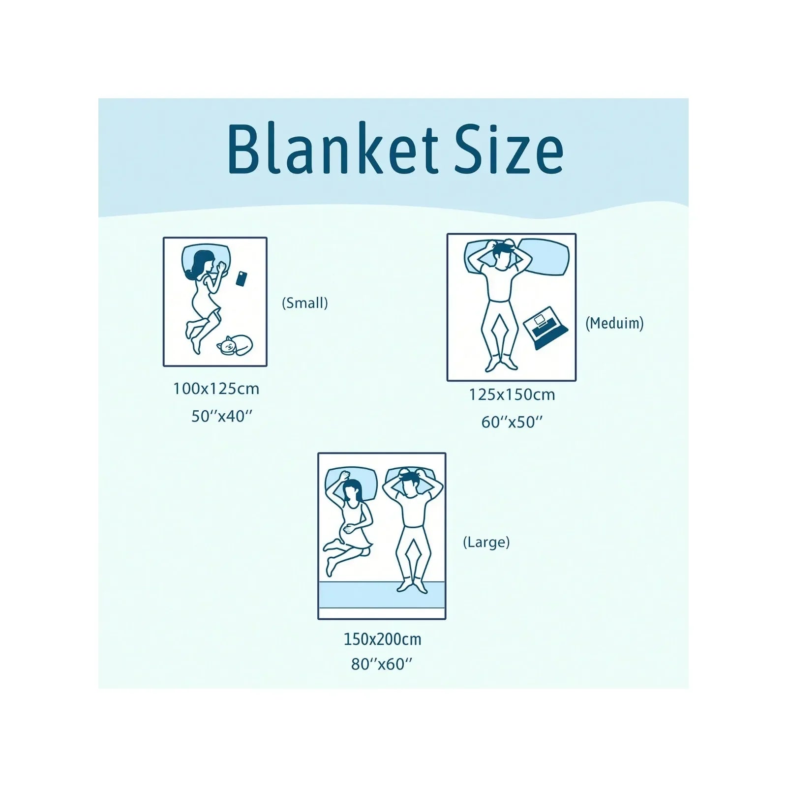 - Three convenient sizes — 50x40 inches, 60x50 inches, and 80x60 inches — to fit adults, and to double as a cozy blanket for pets or lounging on the couch.