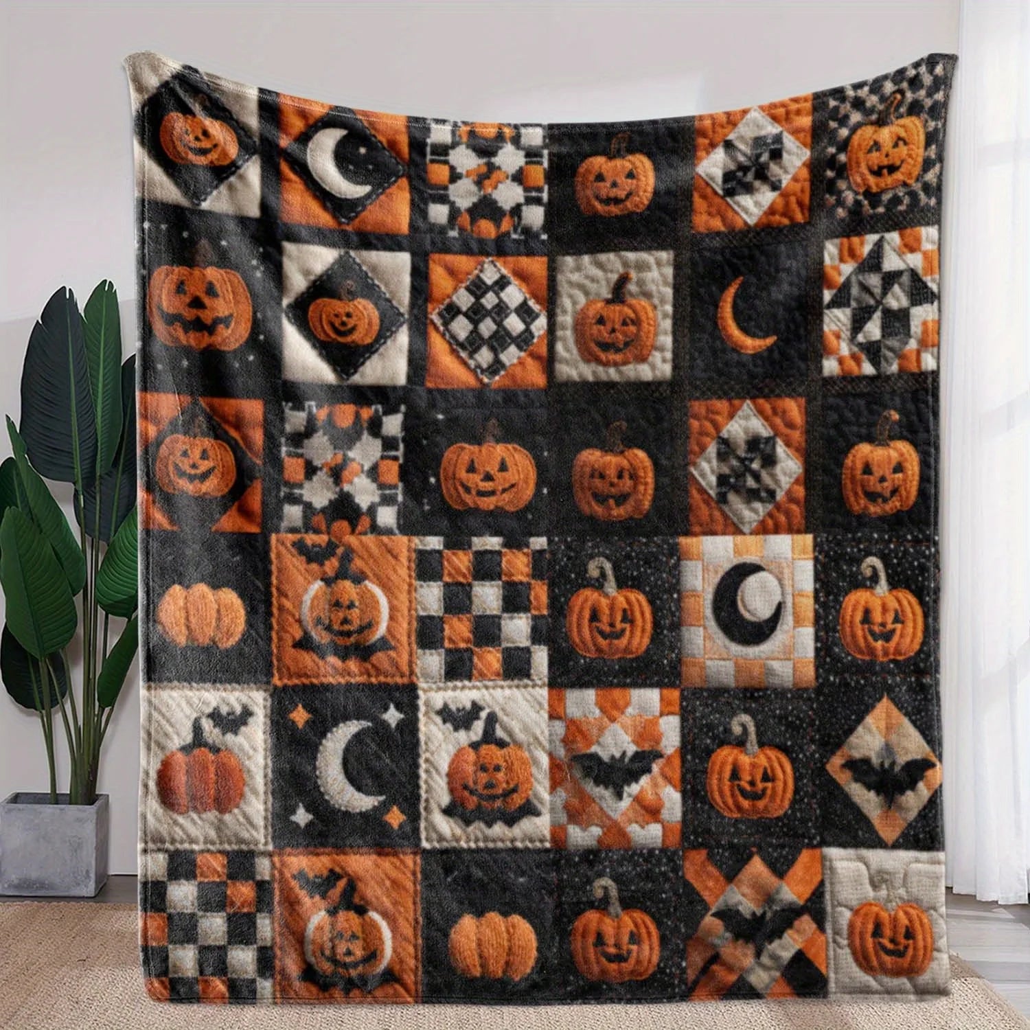 Craft of Weaving Halloween Plaid Pumpkin Moon Print Blanket